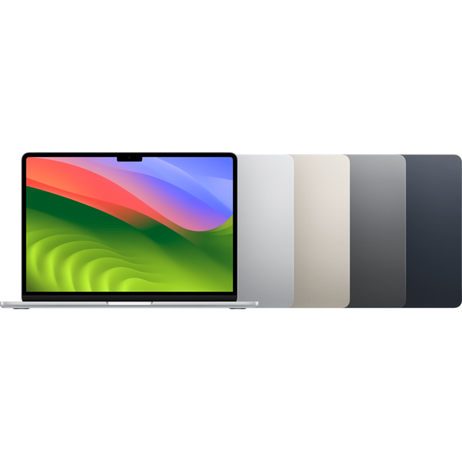 The aluminum case is available in four color options -- dark blue "Midnight" (pictured, left), a warm gray "Starlight", a darker "Space Gray", and classic silver. It weighs 2.7 pounds (1.24 kg). Apple estimates battery life at 15-18 hours depending on the task performed. By default, it shipped with a MagSafe 3-equipped 30W USB-C power adapter. However, for an extra US$20, it could be configured with a 35W Dual USB-C Port Compact Power Adapter or a fast charge 70W USB-C Power Adapter.