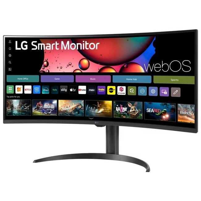 LG Smart Monitor is designed for multitasking while you work, play and watch. Connect the 34” 21:9 curved display to a laptop, desktop or gaming console to immerse yourself in your work or games. Or, with the built-in LG webOS, you can watch favorite shows from your favorite streaming apps.¹
